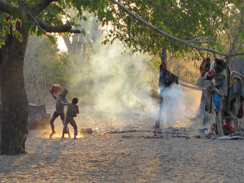 Driving along a sandy road the next morning. Here we were hundreds of kilometers from the nearest paved road.