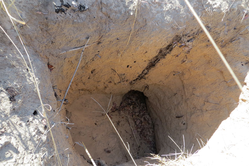 They dug this hole with their hands and axes in order to stab the porcupine in the head. It takes