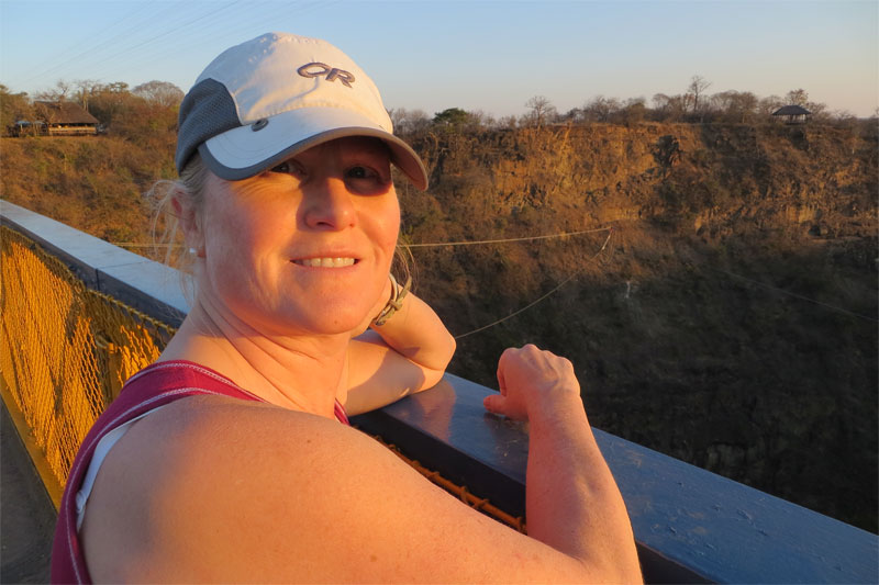 Laurie in no man's land on the bridge between Zambia and Zimbabwe without a passport!