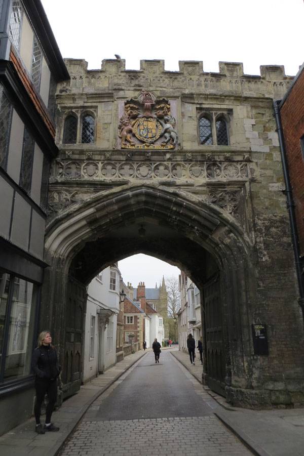 Laurie ponders the old city wall and entrance to Salisbury