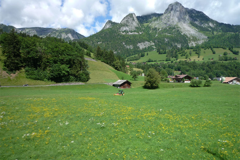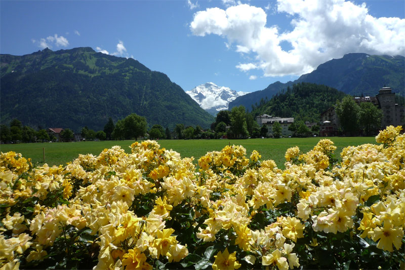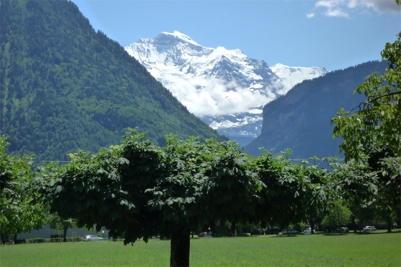 Looking up the Lauterbrunnen valley at Jungfrau from Interlaken.