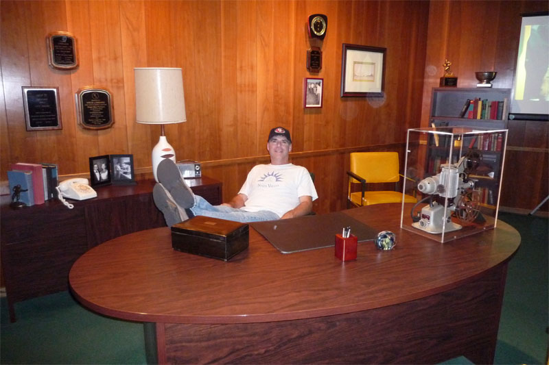 Think Vince would've minded me puttin' my feet up on his formica desk?