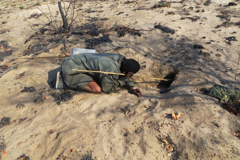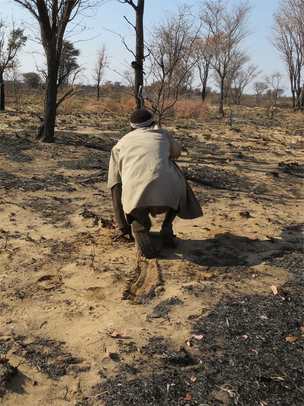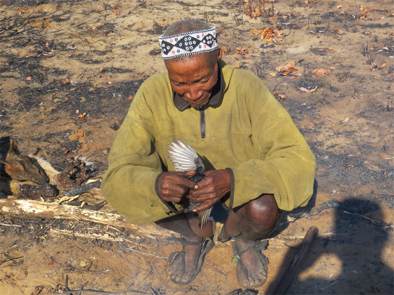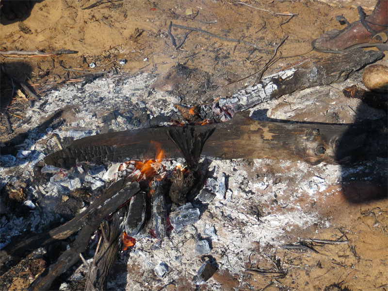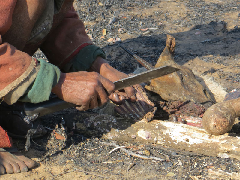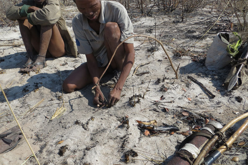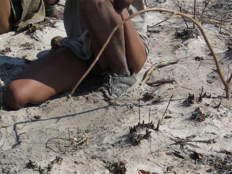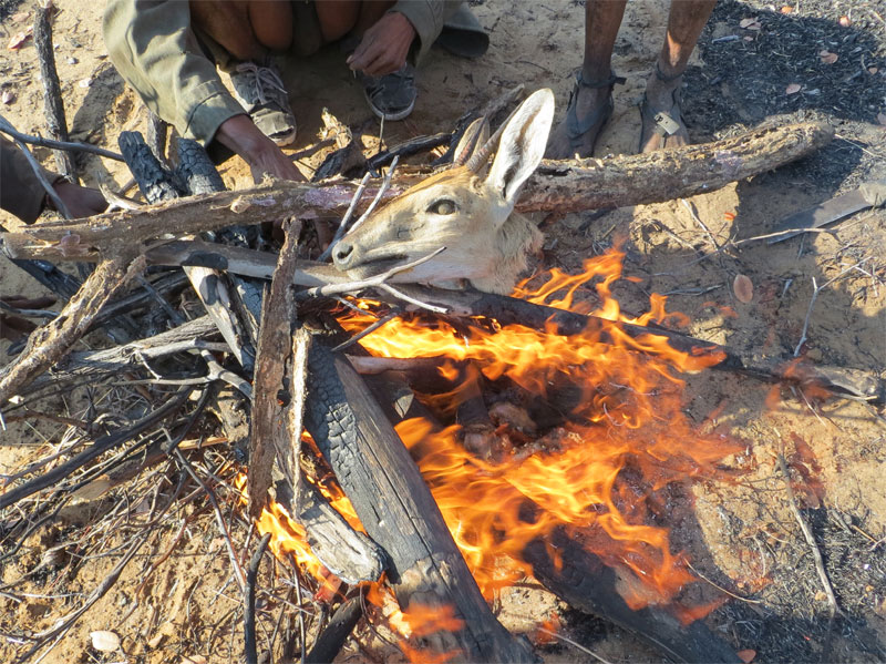 pops him in the fire. This tiny morsel ended up back at the village with the springbok head.