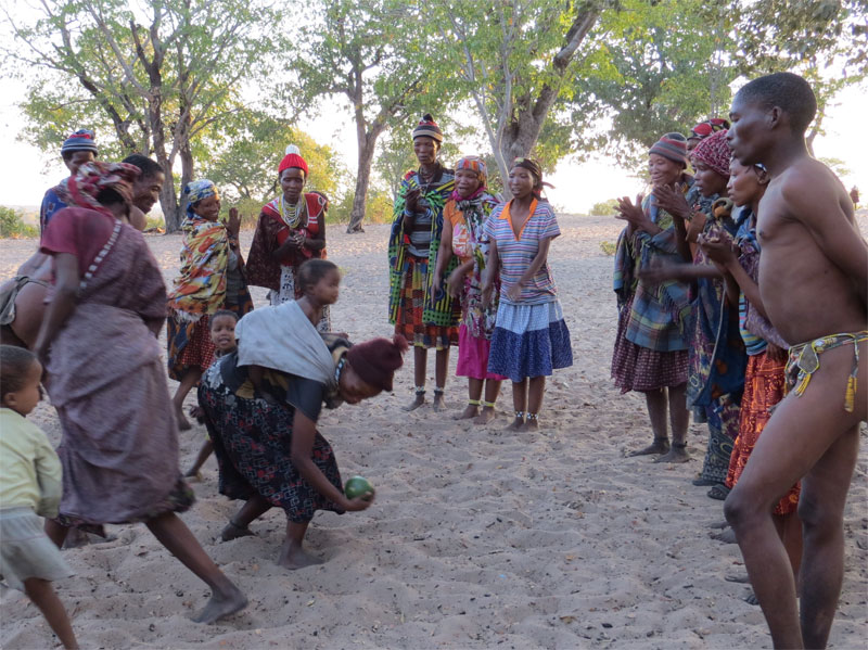 They women played a game where they sang while throwing this fruit in the air for the next person to catch.
