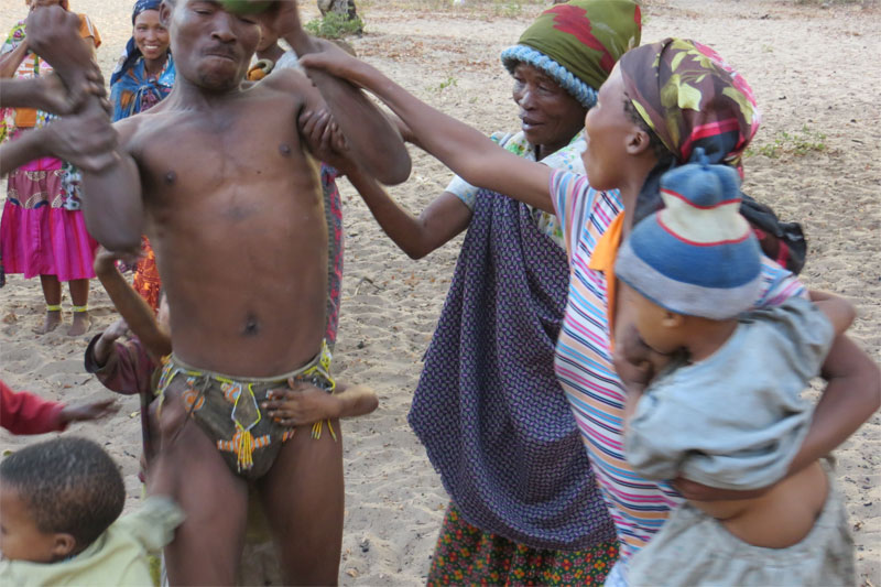 They dug this hole with their hands and axes in order to stab the porcupine in the head. It takes