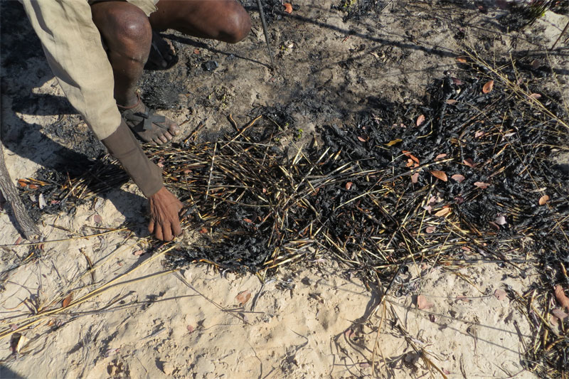 Burnt quills from a past hunt (they roast the porcupine to get the quills off before transporting back to the village.