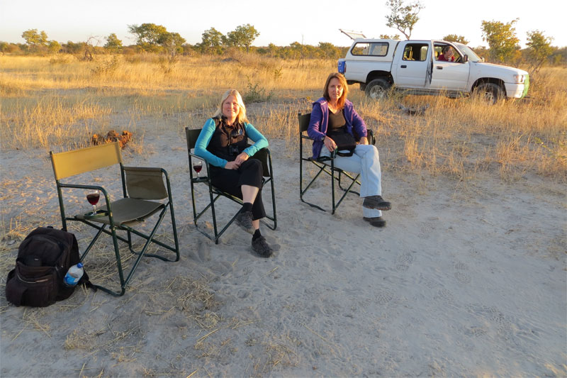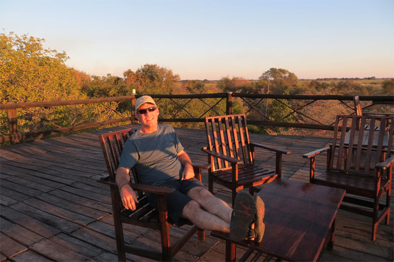 Laurie with Arno's wife Estelle at their private waterhole that attracts elephants nightly.