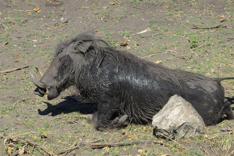 Warthogs like to wallow in mud to keep cool
