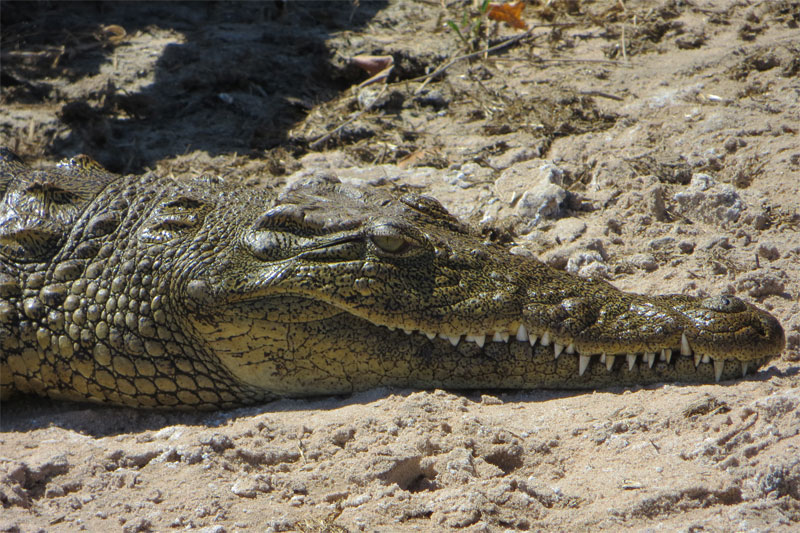 Lots of nile crocs sunning themselves on the banks of the Chobe River