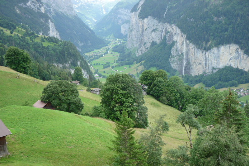 Looking up the Lauterbrunnen valley. Gimmelwald (unseen) sits high on the cliff around