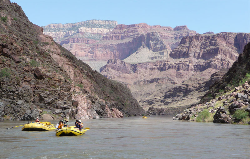 Various types of sandstone, limestone, shale, basalt, and others form the many layers of the canyon.