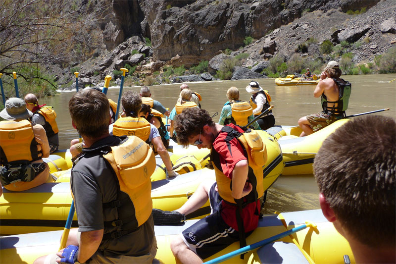 Our group scouting Lava Falls (lot of good that did us). Due to the large amount of snowmelt, this was the first