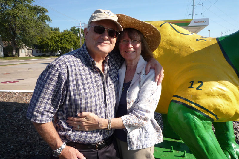 Richard and Sharon in front of the dinosaur that Sharon's cousin had installed some 40 years ago!