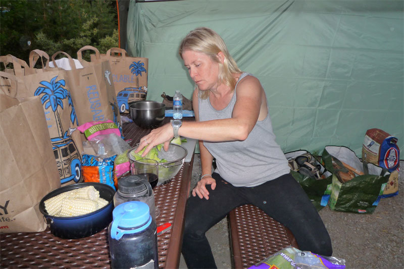 "Making salad and corn."