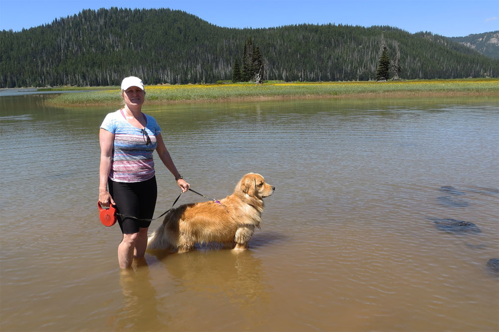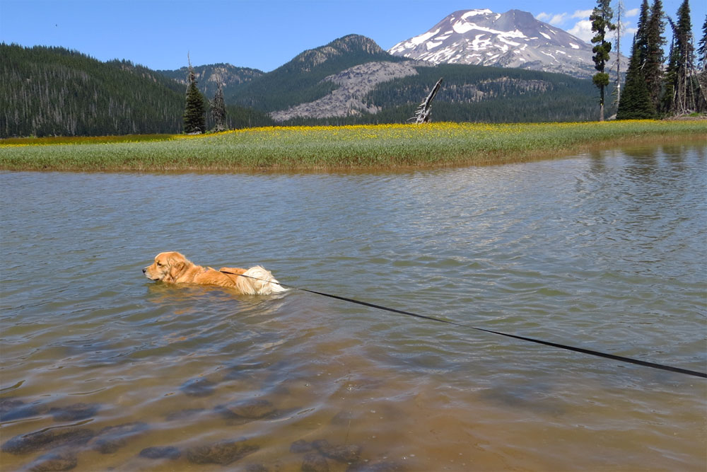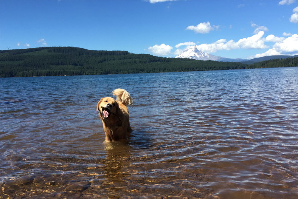 Having fun in Timothy Lake with Mt. Hood in the distance